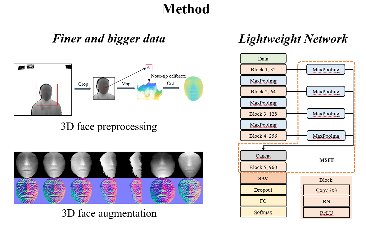 (1)低质量深度人脸数据的预处理方法;