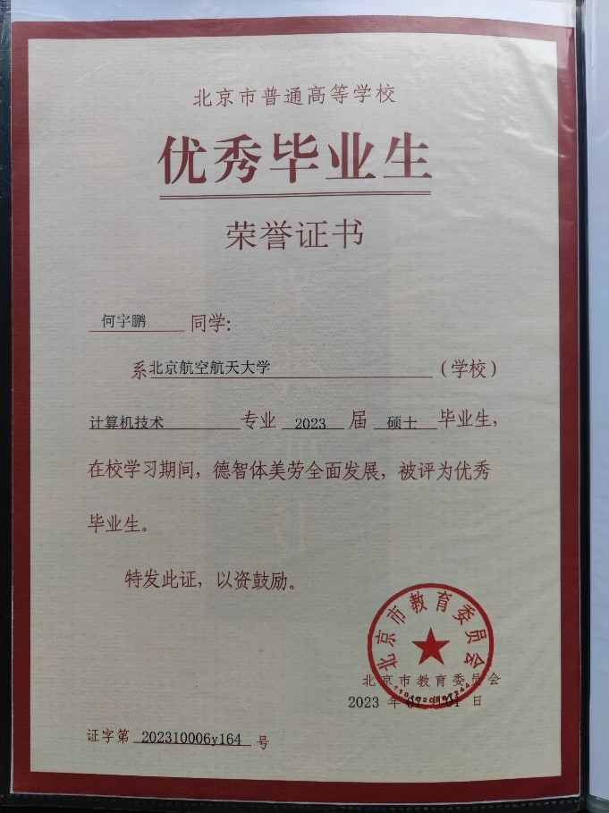 近日,北京麻豆精品秘 国产传媒公布了2023届优秀毕业生名单,实验室何宇鹏同学获评北京市优秀毕业生,杜烨、郭谢帆、刘晟、秦冉、周环宇和周嘉琪同学获评北京麻豆精品秘 国产传媒优秀毕业生。祝贺这些同学!